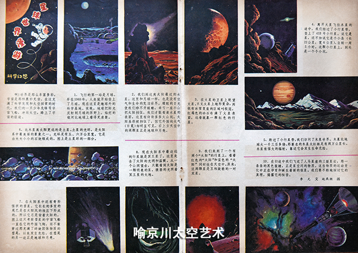 让我下决心从事太空美术创作起决定作用的事件,还是李元先生1984年亲自联系牵线,在北京天文馆举办美国太空美术大师邦艾斯泰和日本太空美术画家岩崎一彰两人的“宇宙美景”国际太空美术作品展。这个画展使我从多个方面领略了宏伟壮丽,精致极美的太空世界,令人大开眼界。这个科学画展,是在当时我国改革开放之初科普界的一次重要的引进宣传活动,时间长达3年多,影响极为深远,后来还制作成“宇宙在召唤”巡回展在全国10多座城市展出。对国内天文科普事业是一个巨大的推动,很多全国著名的科技类报纸和科普杂志上都引用了大量画展中展出的作品,也开始促进了国内太空美术的发展。