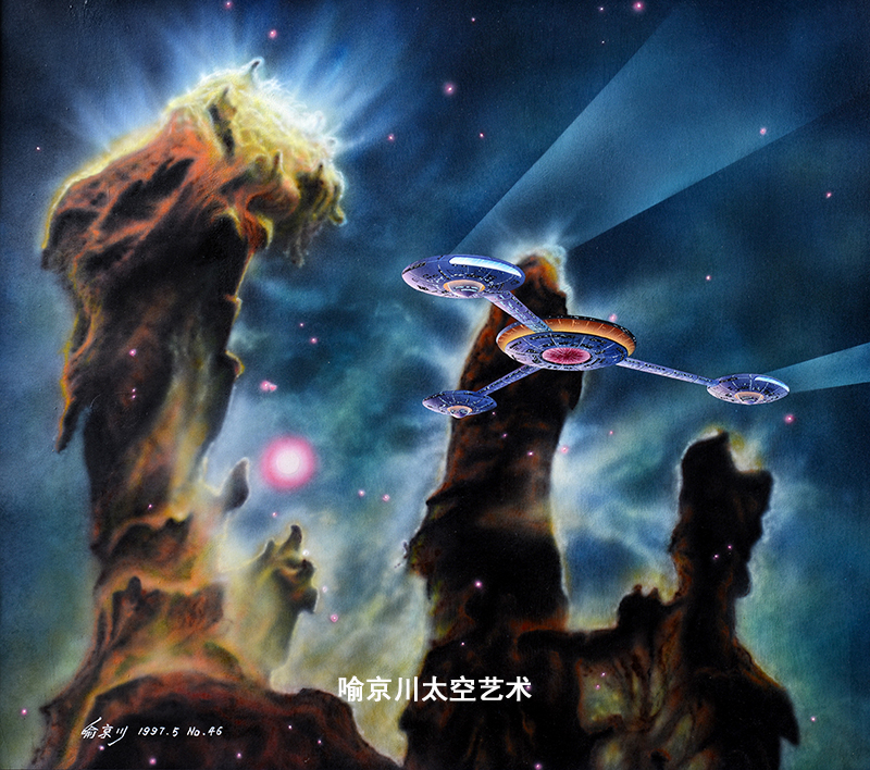 我在26年前的1999年《科幻世界》杂志副刊《异度空间》上,曾经写过一篇介绍太空美术的文章:《太空美术漫谈》,我对太空美术的理解是这样的:“现代天文学把自然美的范围扩大到了地球以外的宇宙空间,越来越多的人们看到了那无边宇宙深处的壮丽世界,由此也产生了新的审美要求,使得美术与天文学更加紧密的结合在一起。在现代美术中形成了一个新的分支领域:太空美术。由于太空美术是一种建立在现代天文学的空间探测和理论研究成果基础之上,以绘画的形式来展现宇宙天体真实景色以及未来人类改造和征服太空世界的艺术。从而被誉为是科学与艺术完美融合的结晶。” 这些文字内容后来被“百度百科”和许多有关叙述太空美术文章的作者所引用。如今,随着国内对太空美术研究的不断深入,相关论述也越来越多,内容越来越丰富。