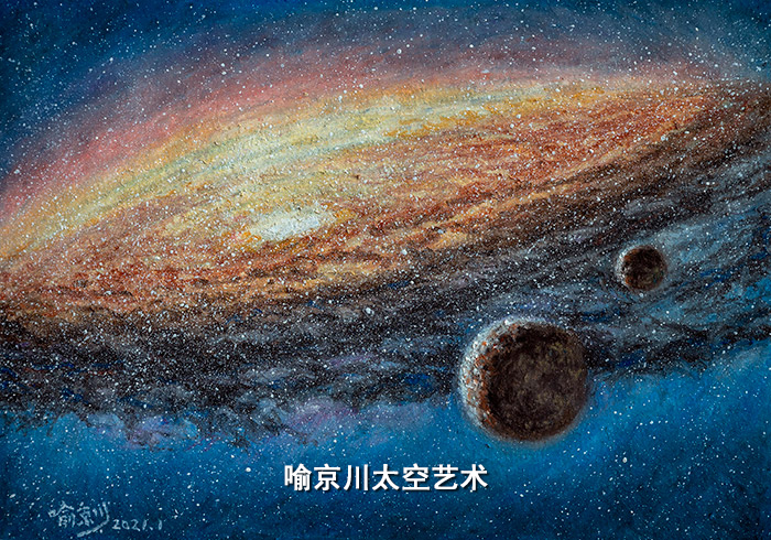 从1980年初次接触到太空美术后成为一个忠实的爱好者,至今居然45年了,能直到现在还是那样热爱着也是一件深感神奇的事情。想当年这个爱好让周围的朋友师长们颇为不解,在那个年代,科学和艺术好像完全是风马牛不相干的事,曾经还有过激烈的争论。在吴冠中和李政道两位泰斗共同带头倡导下,如今,科学与艺术已经深深的融合在一起,深入人心,与我们的生活更加密切了。太空美术正是这种科学艺术相融合的结晶,也定会受到更多人们的了解和喜爱。