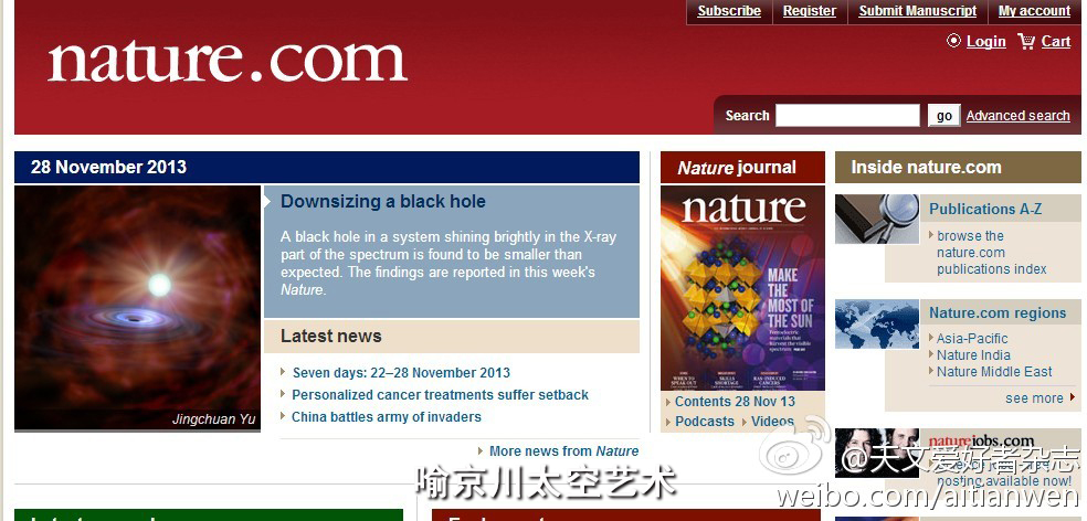 2013年在英国《自然》杂志网站上发表的作品